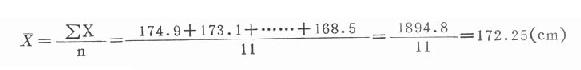 例18.1 某地11名20岁健康男大学生身高(cm)分别为174.9,173.1, 171.8,179.0,173.9,172.7,166.2,170.8,171.8,172.1,168.5。试计算其均数。
