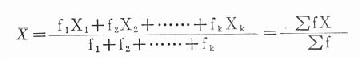式中,k为组段数;f1,f2,……,fk分别为各组段的频数;X1,X2,……,Xk分别为各组段的组中值,组中值为本组段的下限与相邻较大组段的下限相加除以2,如“162-”组段的组中值X1=(162+164)/2=163,余仿此。