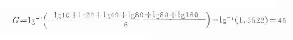 例18.3 设有6份血清的抗体效价为1:10,1:20,1:40,1:80,1:80,1:160。求其平均效价。