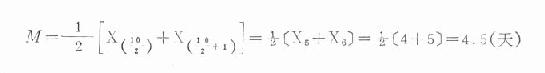 式中,n 为观察值的总个数,X的右下标(n+1/2)、(n/2)、和(n/2+1)为有序数列中观察值的位次,X(n+1/2)、X(n/2)和X(n/2+1)为相应位次上的观察值。